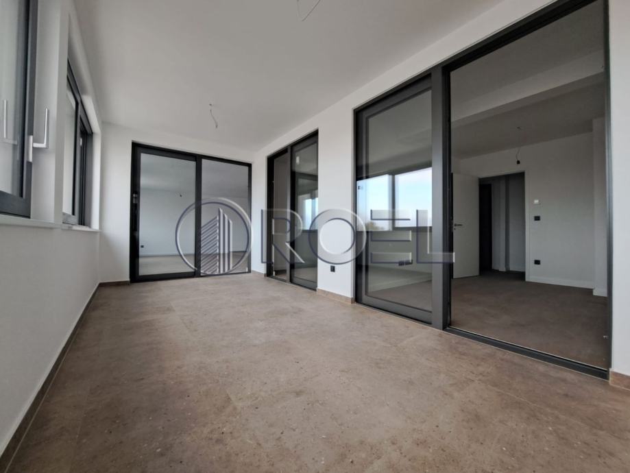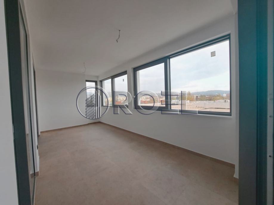 Stan se sastoji od ulaznog prostora, prostranog dnevnog boravka povezanog s kuhinjom i blagovaonicom otvorenog koncepta s izlazom na balkon, tri komforne spavaće sobe, moderne kupaonice s WC-om te dodatnog toaleta. Zahvaljujući pažljivo osmišljenom rasporedu, prostor je maksimalno iskorišten, a velike staklene površine i troslojna stakla osiguravaju obilje prirodnog svjetla i energetsku učinkovitost.