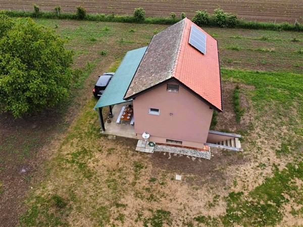 Kuća je površine cca 45m2 sa podrum površine cca 20m2. Voda- bunar. Struja- solari. Garaža, šupa. Eko trajni nasad: 350 stabala oraha (15 god. starih), 100 stabala lješnjaka i 60 stabala raznog voća. Zidani roštilj. Kompletna mehanizacija za održavanje. Čestica površine je 27.955m2. Imanje je kompletno ograđeno. Udaljenost 500m do asfaltne ceste.
