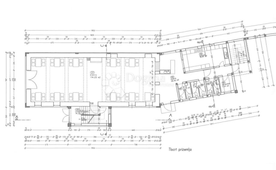U prizemlju se nalazi restoran koji je u potpunosti uređen i ima kapacitet od 80 sjedećih mjesta unutar prostora. Restoran također posjeduje dvije terase: prva terasa ima 60 sjedećih mjesta, dok druga terasa ima 10 sjedećih mjesta i površine. Uz sve to, objekt nudi 25 parkirnih mjesta, što je dodatna prednost za posjetitelje i korisnike objekta.