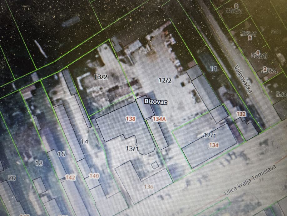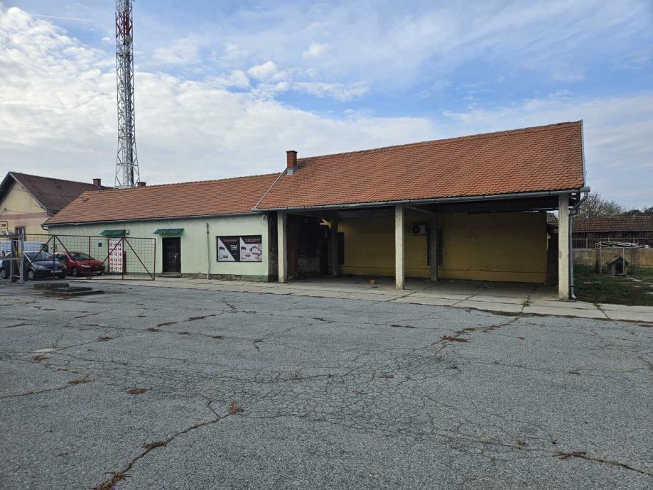 Poslovna zgrada u centru Bizovca površine 99m2, sa skladištem i ekonomskim dvorištem. Skladište je površine 571m2, a plac 3643m2.