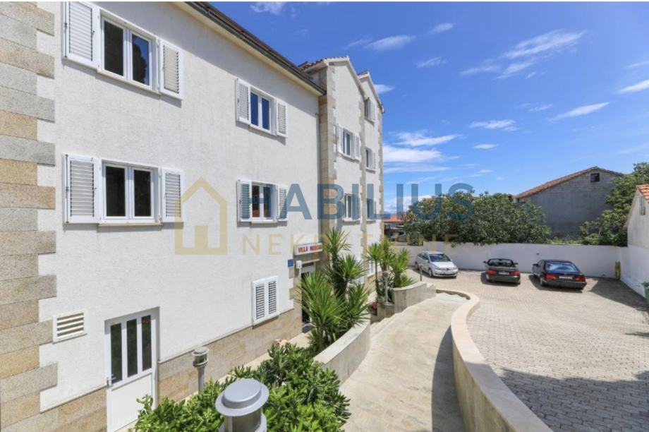 a u potkrovlju se nalazi predivan stan od cca110m2 sa kojeg se pruža predivan pogled na more!