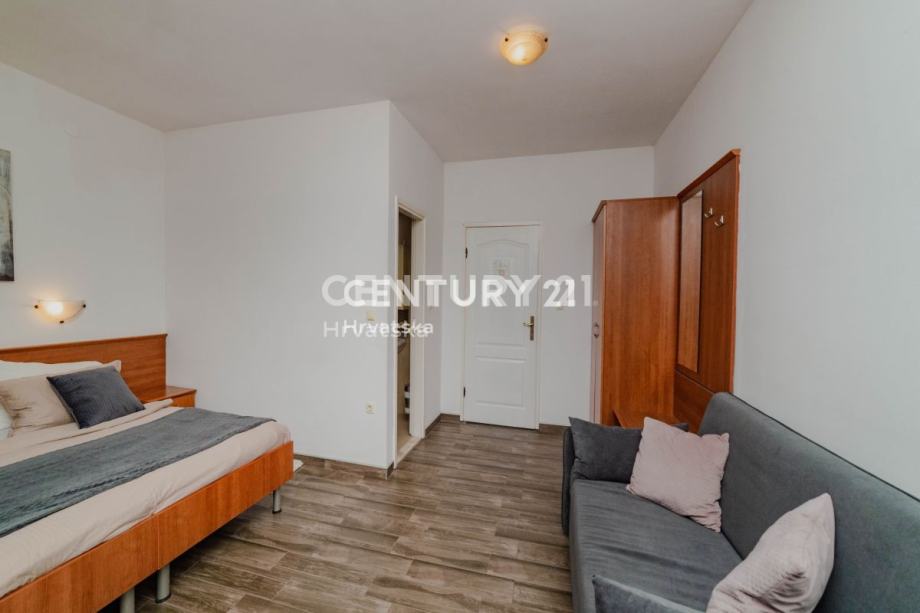 Hotel se sastoji od podruma, prizemlja, prvog, drugog i trećeg kata. U podrumu se nalazi vešeraj, kotlovnica, priručna kuhinja, spremište. Prizemlje sačinjavaju: recepcija, kuhinja, hodnik, šank, unutarnja sala sa cca 40-50 sjedećih mjesta, spremište, tri sanitarna čvora i vanjska natkrivena terasa sa cca 100 sjedećih mjesta sa zidanim kominom na drva. Na prvom, drugom i trećem katu nalazi se po 6 ( 2 ili 3 sobne sobe ) sa vlastitim kupaonicama, terasama,spremište i po jedan dvosoban kompletno opremljen apartman, sve ukupno 18 soba i 3 velika apartmana. Hotel ima kapacitet od ukupno 60 ležajeva i vrlo dobro posluje u sezoni ali i tijekom čitave godine. Ukupna stambena površina hotela je 1300m2 + terasa od cca 100m2 +privatan parking površine 387m2. Svaka soba i apartman, kao i prizemlje gdje se nalazi sala za goste su opremljeni klima uređajima i grijanjem ( kombinirano podno grijanje i kotlovnica na lož ulje ). Ima dovoljno dvorišnog prostora za parking vozila i autobusa. Uredna dokumentacija, uredno vlasništvo. Nekretnina pruža više mogućnosti poslovanja: i dalje kao hotel prvenstveno za smještaj gostiju ( noćenje s doručkom ili polupansion ), restoran ala carte sa smještajem, uz manje preinake kao Dom za umirovljenike i slično. Biograd na moru je povijesni kraljevski grad, poznato i traženo turističko mjesto, gdje turizam počinje od 4.mjeseca i traje do kasne jeseni. Ujedno je poznati po lijepim plažama ( Bošana, Dražica i Soline ), ima uređeni camp Soline sa svim sadržajima koji se nalazi u blizini ovog hotela. Grad ima i manji trgovački centar te veliku ponudu trgovina, kafića, restorana i drugih sadržaja, ima lijepu uređenu šetnicu uz more. Na plažama dostupna je velika ponuda svih sadržaja ( fast fooda, sladoleda, kafića, pekara, kioska, voća, igraonica i sl.) što turistima pruža ugodan cjelodnevni boravak na plaži. Za više informacija: E-mail: zorica.saric@c21.hr info.lider@c21.hr Mob. 091 791 0007 Češki/ EXKLUZIVNÍ VÝPRODEJ!