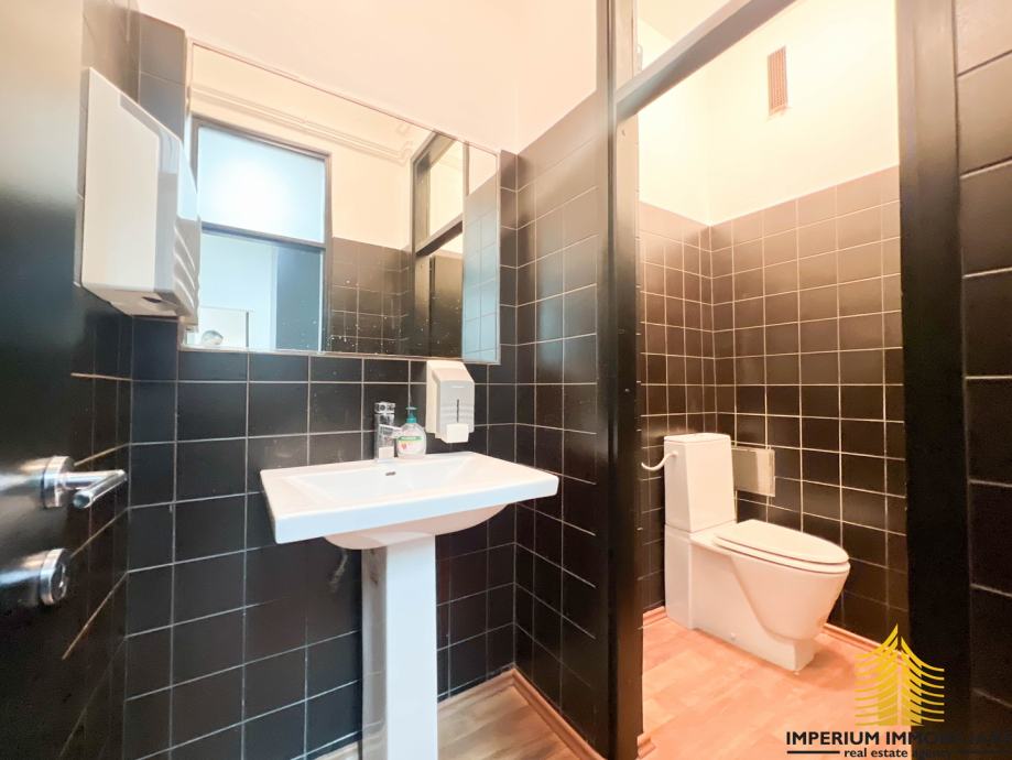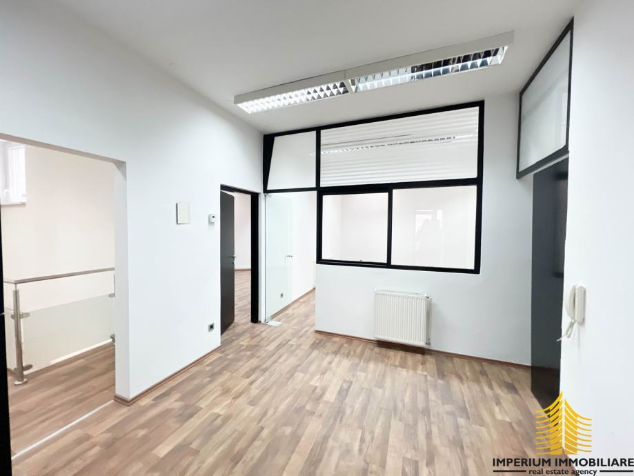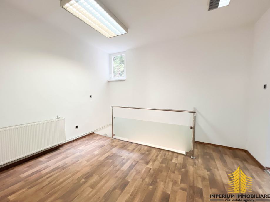 Samo prizemlje (100 m2) se sastoji od pet zasebnih prostorija, muškog i ženskog toaleta te čajne kuhinje dok je ulaz u poslovni prostor moguć sa strane ulaza u zgradu i samog poslovnog prostora orijentiran na cestu.
