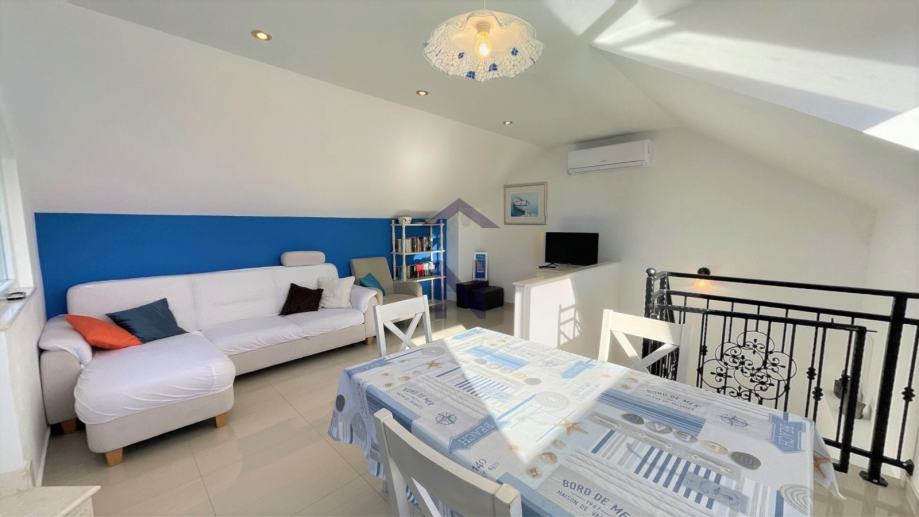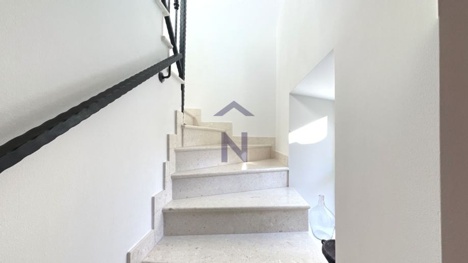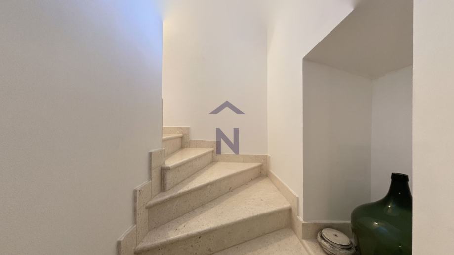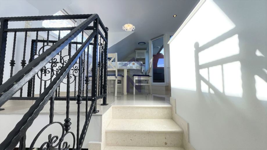 U prizemlju se nalazi dvosoban stan (dnevni boravak, kuhinja, kupaona, spavaća soba i terasa). Na prvom katu se nalaze hodnik, dvije spavaće sobe i kupaona. Drugi kat se sastoji od velikog open space prostora koji uključuje dnevni boravak, kuhinju i spremište, kao i balkon sa prekrasnim pogledom na more.