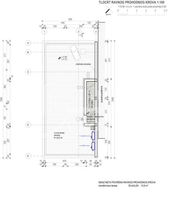 Stambena građevina: prizemlje + kat (P+1), ukupna GBP 135,70 m²