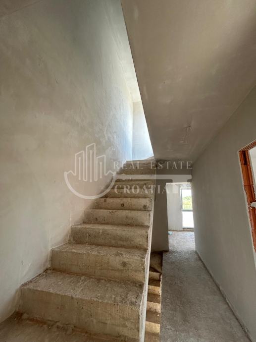 Prizemlje – predulaz, predsoblje, kuhinja, kupaonica, dnevni boravak s blagovaonicom, natkrivena terasa, spremište. 1. kat – hodnik, master spavaća soba s vlastitom kupaonicom, dvije dodatne sobe i kupaonica. Krovna terasa – pristup sa stubišta.