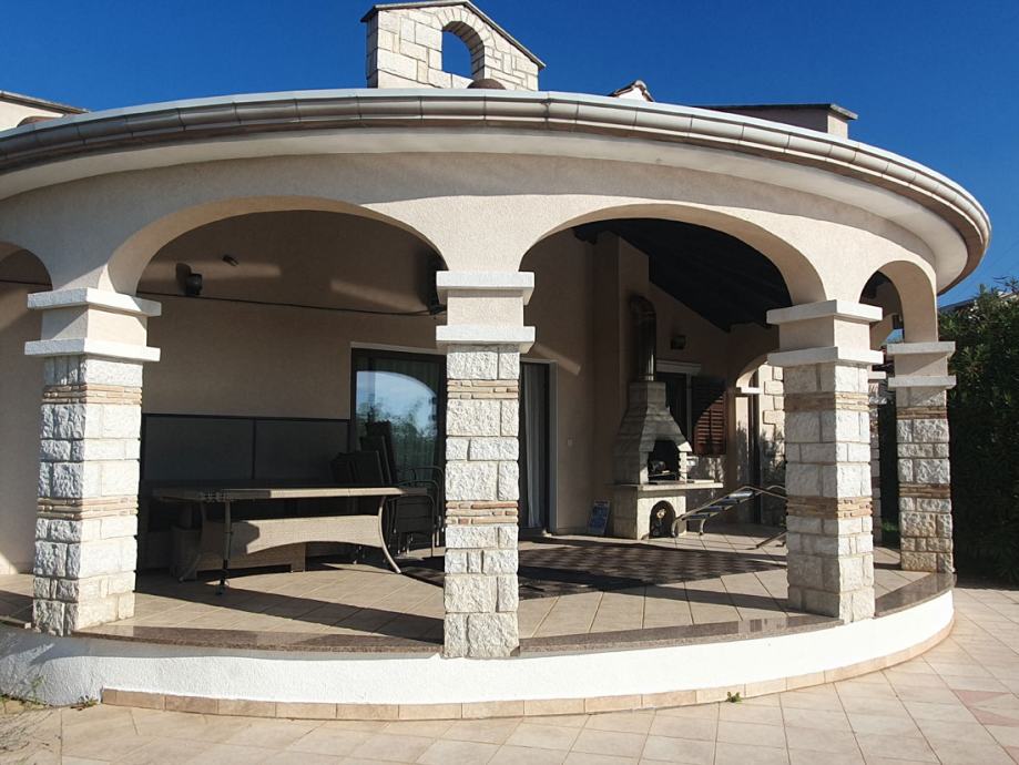 Na ca.6km udaljenosti od mora i Poreča, smještena je ova samostojeća kuća ukupne površine ca.130 m2. Sastoji se od: predsoblja, kotlovnice, dnevnog boravka, kuhinje sa malom ostavom i blagovaonice, spavaće sobe sa vlastitom kupaonicom, hodnika, dvije spavaće sobe, kupaonice i terasa sa vanjskim kaminom / roštiljem. Na uređenom zemljištu površine ca.859m2 smješten je i bazen. Kuća je klimatizirana, ima centralno grijanje i prodaje se namještena. Djelomičan pogled na more.