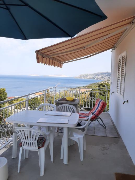 U prizemlju kuće smješten je kuhinja, wc i ostava s prekrasnom velikom terasom i vrtom s 11 maslina i mediteranskim biljem. Na prvome katu nalazi se dvosoban, kompletno namješten stan, s kuhinjom, blagovaonom i dnevni boravkom odakle je izlaz na lijepu i prostranu terasu. Vanjsko stepenište vodi na 2. kat kuće koji je u roh-bau stanju te se može urediti po želji budućeg vlasnika.