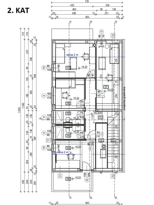 Prodajemo građevinsko zemljište u mještovitoj (pretežito stambenoj) zoni urbano pravilo 3.2. sa pravomoćnom plaćenom građevinskom dozvolom za kuću sa 2 stana ukupne neto površine 211 m2 (stanovi visoko prizemlje 74 m2 i dvoetažni 1.kat i potkrovlje 137 m2).