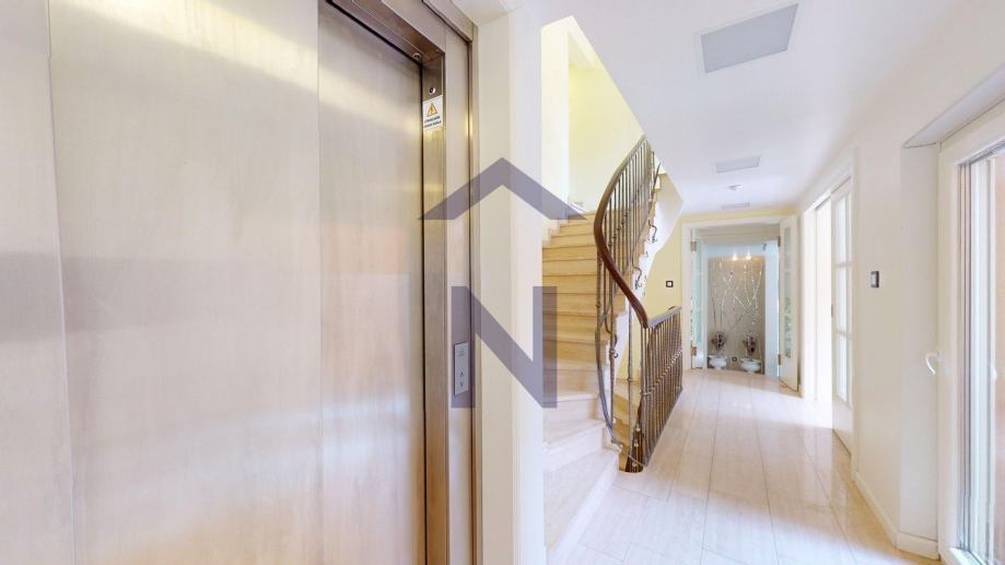 Izuzetno kvalitetno građena, opremljena s vanjskim bazenom, saunom, vinskim podrumom, velikim garažama, te dva lifta (gospodarski i za vlasnika zasebni). Također ima odvojen ulaz za osiguranje.