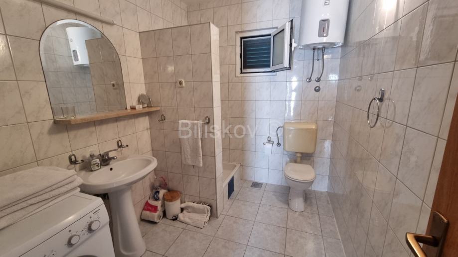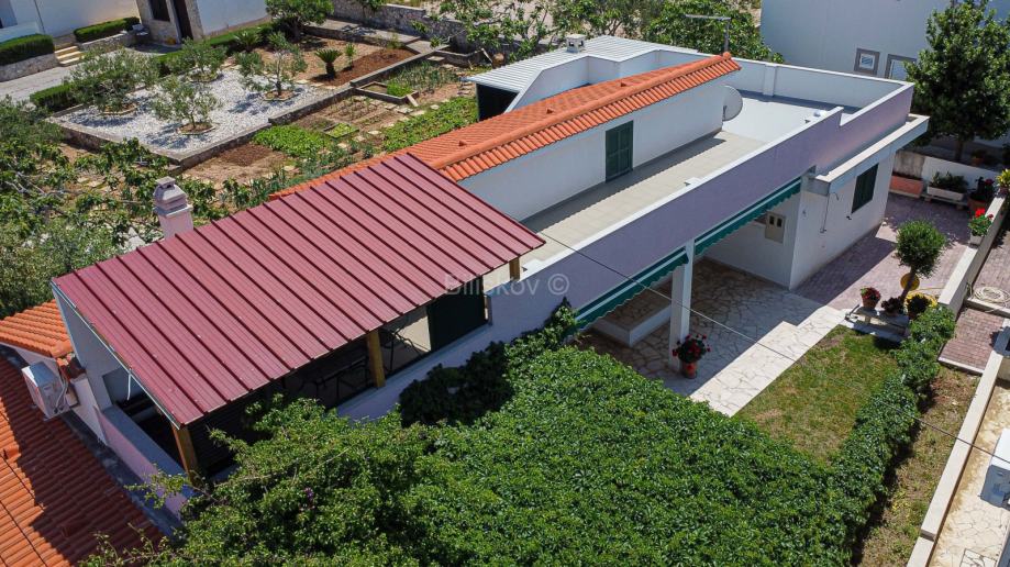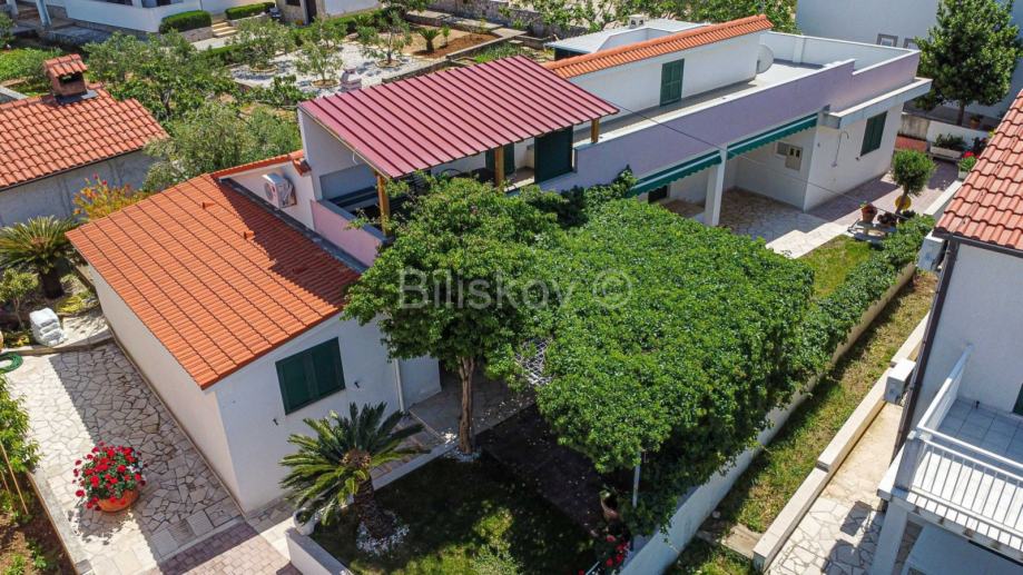 Kuća se sastoji od tri zasebne stambene jedinice, velikom natkrivenom terasom u prizemljem te popločanom terasom u sklopu koje se nalazi roštilj. U kući se nalazi jedan 2-sobni apartman, jedna 1-sobni apartman i jedna studio apartmana.