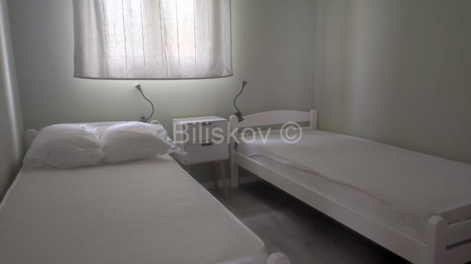 Apartman u prizemlju (77m2): hodnik, dvije spavaće sobe, dnevni boravak, kuhinja, blagovaonica, kupaonica, zasebni WC.