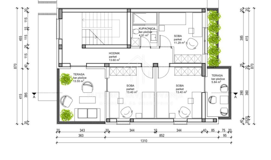 Ova etaža ima i dvije nenatkrivene terase, jednu površine 13,55 m² i drugu od 5,84 m², koje pružaju dodatni komfor i mogućnost uređenja privatne vanjske oaze za odmor.