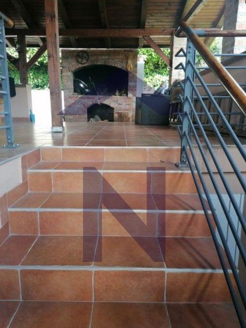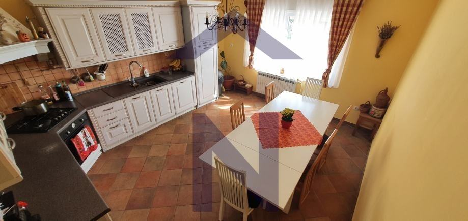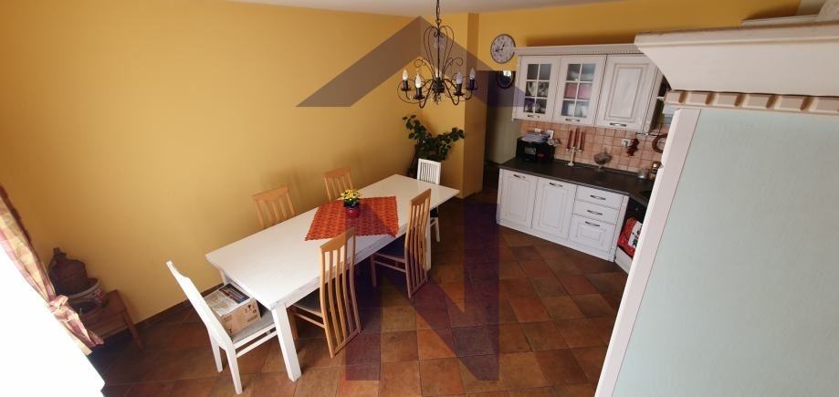 U prizemlju se nalaze 3 spavaće sobe, kupaonica, ostava, vešeraj i hodnik. Također se nalazi garaža, zaseban WC, spremište i parkirna mjesta. Na katu se nalazi dnevni boravak s blagovaonicom, rustikalna kuhinja, balkon, kupaonica, smočnica i natkrivena terasa s pečenjarom površine 70 m2.