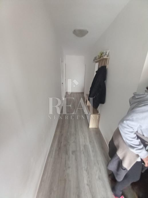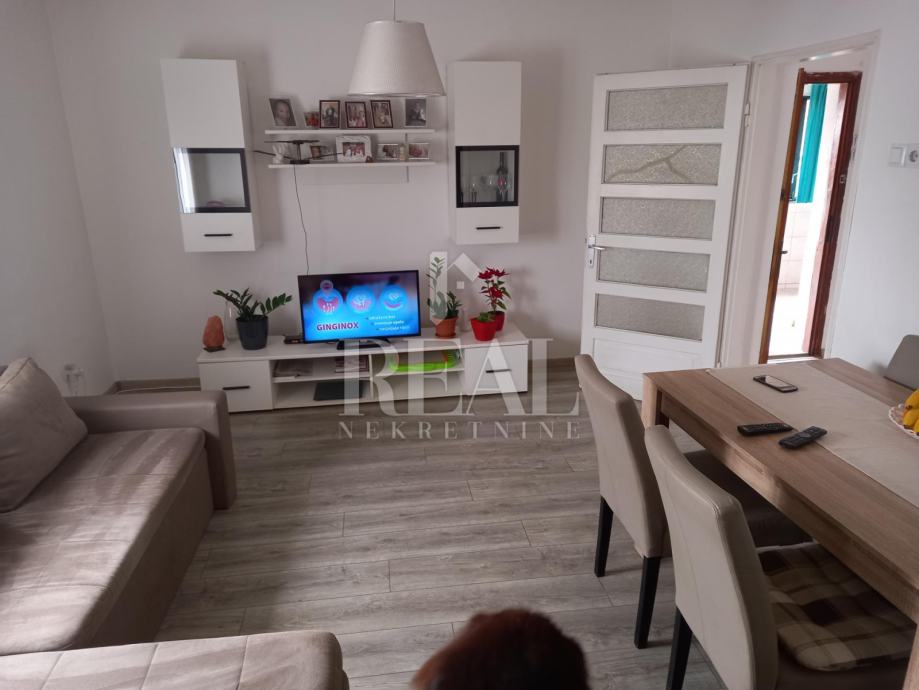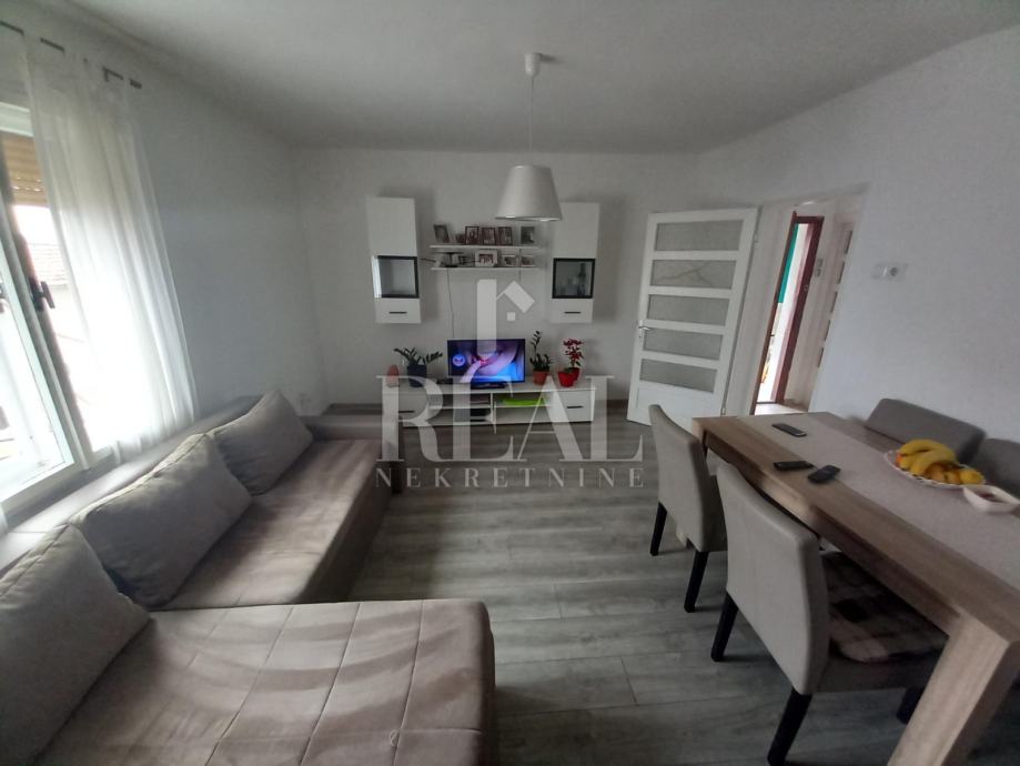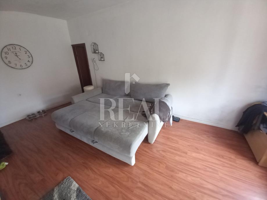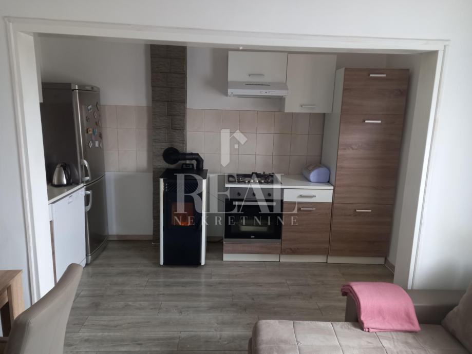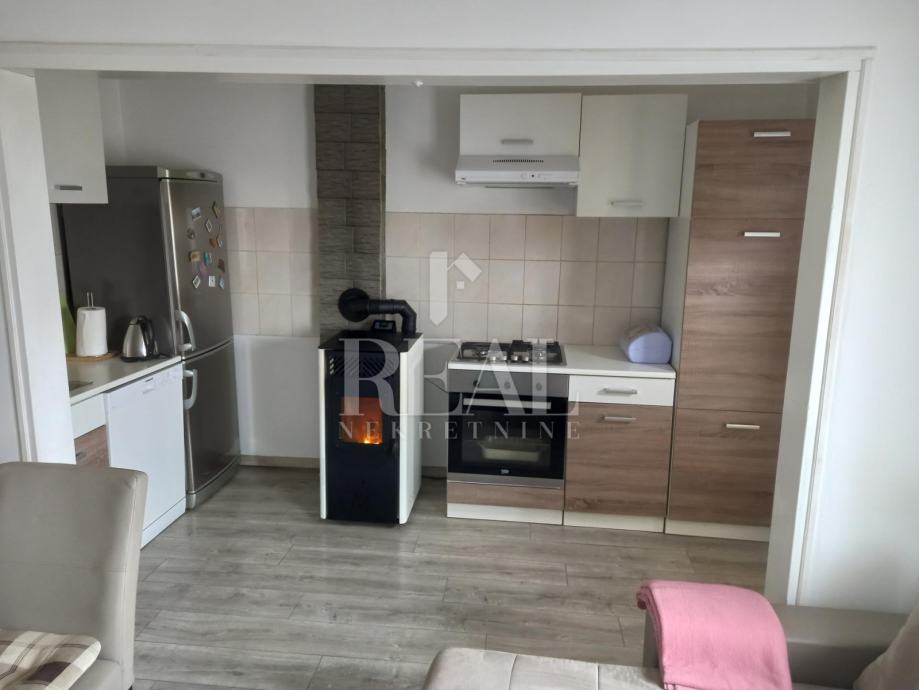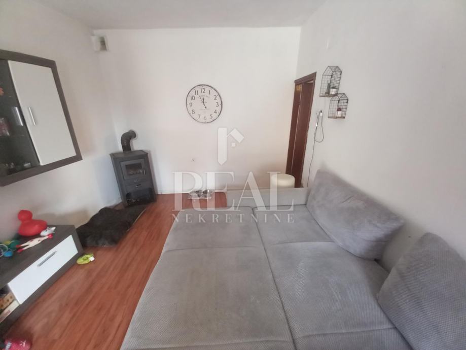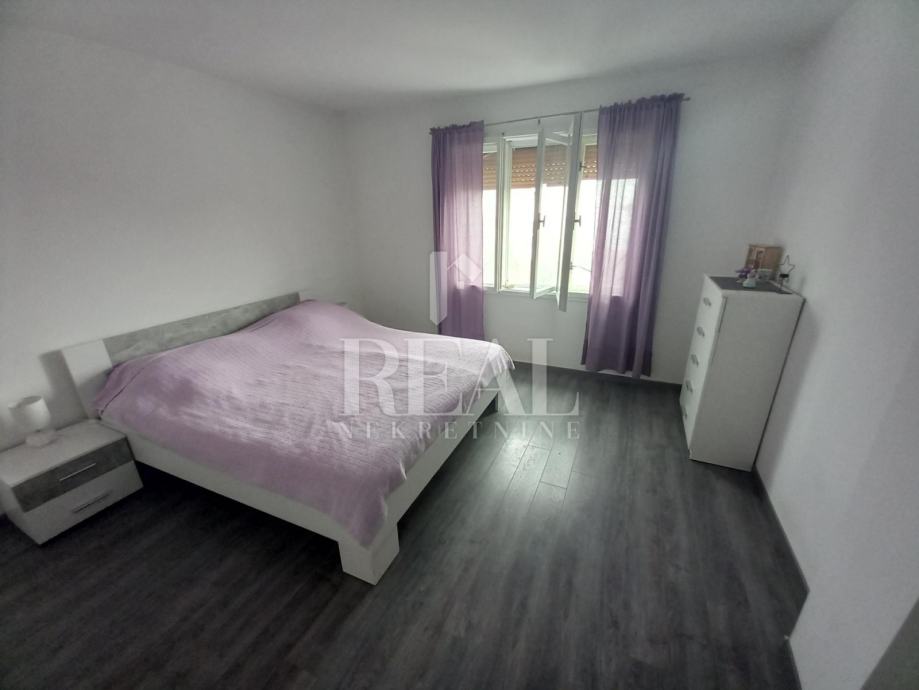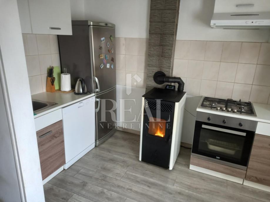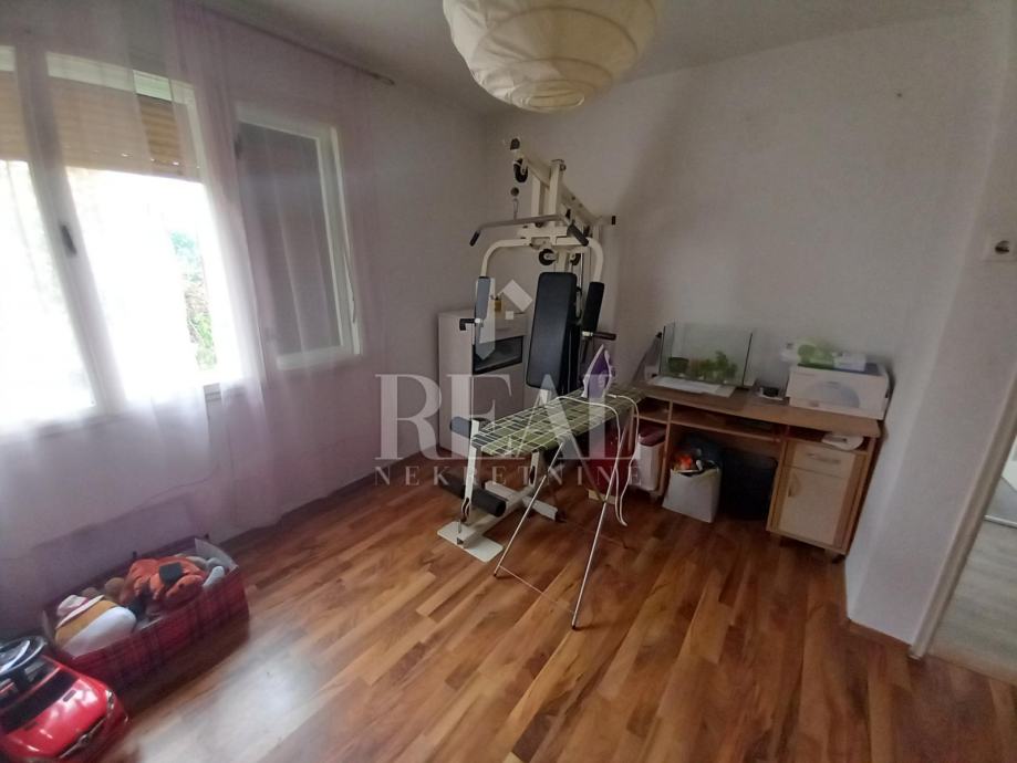 Prodajemo u slijepoj ulici na Gornjem Zametu samostojeću kuću s dva stana građenu s početkom 70-ih godina. Kuća se nalazi na čestici od 660 m2. U suterenu se nalazi garsonijera od 38 m2, a uz nju je montažna garaža. Na katu se nalazi komforan stan u koji se ulazi iz zatvorene verande i velike terase. Stan od 105 m2 ima kuhinju s blagovaonom i dnevnim boravkom iz kojeg se izlazi na balkon, tri prostrane sobe, hodnik, kupaonu i ostavu. Na kući je termo fasada postavljena 2005. godine. Priključena je na gradsku kanalizaciju. Oko kuće je prostrana dijelomično uređena okućnica na kojoj je moguće parkirati nekoliko vozila. U neposrednoj blizini se nalazi autobusna stanica linije 3.