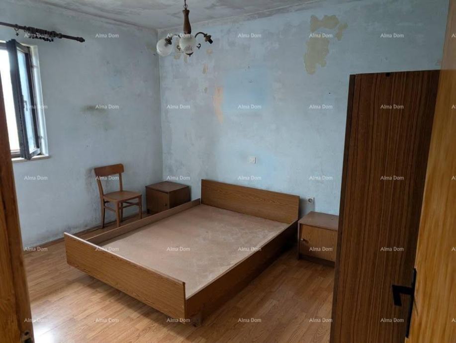 Na prodaju samostojeća, djelomično useljiva kuća u Pazinu, ukupne površine oko 260 m² (dimenzije 10,35 x 12,55 m), s okućnicom/vrtom od 110 m². Kuća se sastoji od: