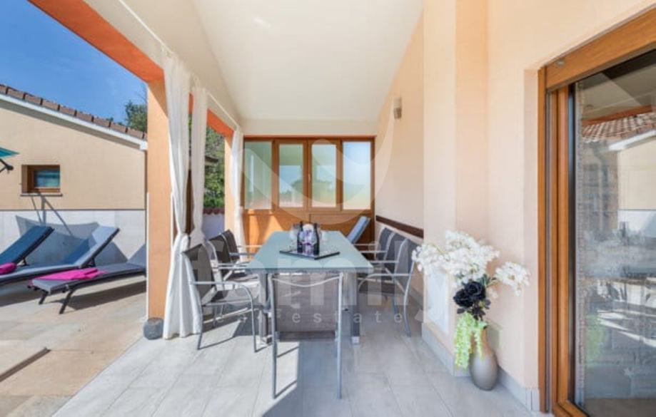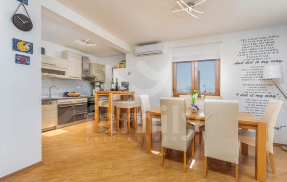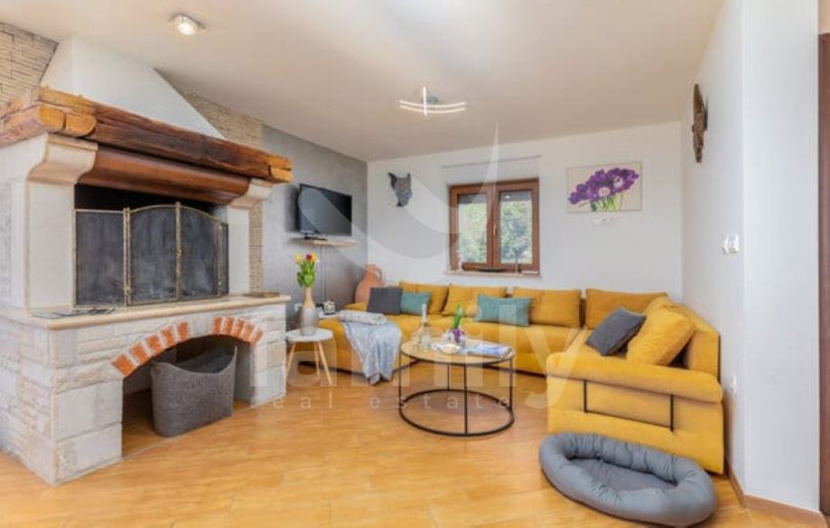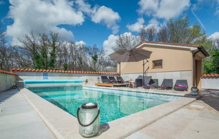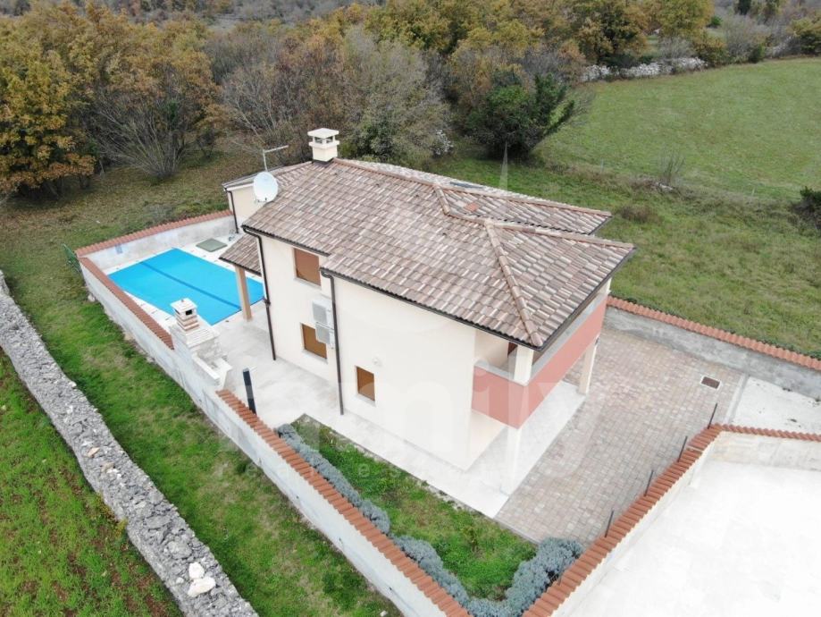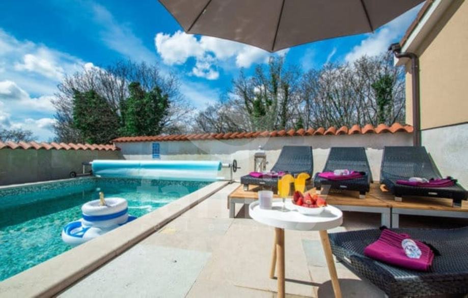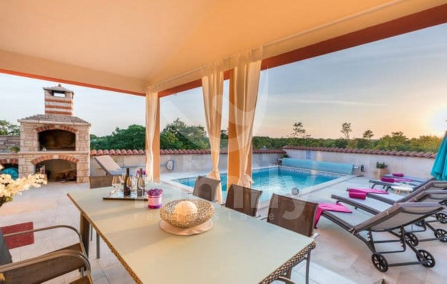 Smještena je oko 15 km sjeveroistočno od Pule, na području koje povezuje unutrašnjost Istre s istočnom obalom Jadrana. Nekretnina se proteže na dvije etaže, ukupne stambene površine 160 m2. Ova moderno uređena vila na prizemlju nudi kuhinju, blagovaonicu s dnevnim boravkom u open-space konceptu, kupaonicu te ostavu, dok su se na prvom katu smjestile spavaće sobe i kupaonica. Jedna od spavaćih soba pruža privatnu terasu. U dnevnom boravku nalazi se kamin koji daje posebni ugođaj u zimskim danima, te ima izlaz na komfornu terasu. Svaka soba ima klima uređaj i TV, dok je za potrebe grijanja u cijeloj kući postavljeno podno grijanje. Postavljena je ALU-PVC stolarija s komarnicima te su podovi obloženi u cijelosti keramikom. Na potpuno ograđenoj i uređenoj okućnici smjestila se ljetna kuhinja sa vanjskim kaminom, te u nastavku grijani bazen od 30 m2 sa uređenim sunčalištem. Također su osigurana 2 parkirna mjesta i garaža.