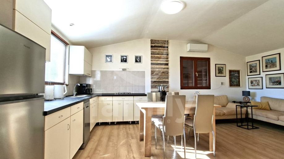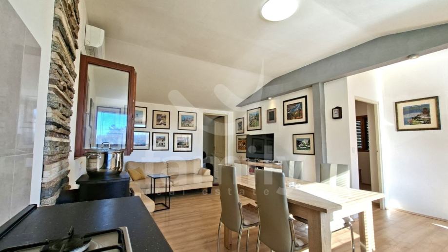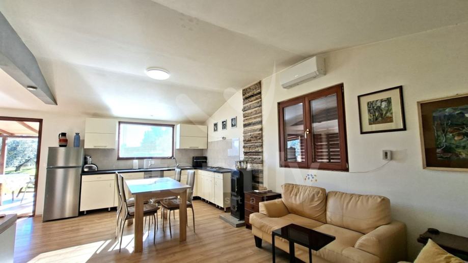 Na atraktivnoj lokaciji u mirnom naselju u sklopu općine Marčana nalazi se ova predivna samostojeća kuća površine 76 m2 s prostranom okućnicom površine 9129 m2. Nekretnina se sastoji od otvorene terase, osvijetljenog i ugodno namještenog dnevnog boravka sa kuhinjom otvorenog koncepta opremljenom kućanskim aparatima što budućim vlasnicima osigurava veoma ugodan boravak u nekretnini, dvije spavaće sobe i kupatilo sa tušem. Podovi u sobama i dnevnom boravku su obloženi laminatom dok je u ostatku nekretnine postavljena keramika. Stolarija u cijeloj kući je drvena i u dobrom stanju, grijanje je regulirano putem peći na drva i klima uređaja. Kuća je građena od cigle sa pregradama od gipsanih ploča te su na krovu postavljeni solarni paneli. U sklopu dvorišta na terasi je smještena ljetna kuhinja, kamin, šupa i prekrasan maslenik. Masline su starosti od 15 do 25 godina te daju prvoklasno maslinovo ulje. Na cijelom imanju postoji nekoliko priključnih točaka koje se mogu koristiti za navodnjavanje.