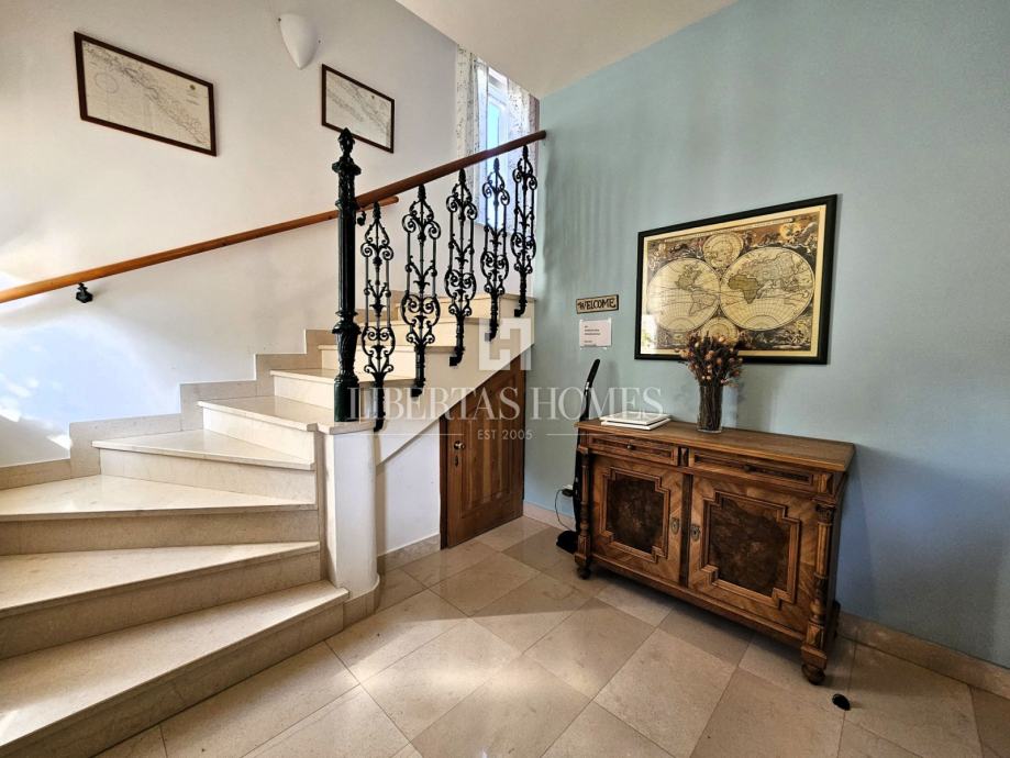 Kuća se prostire na četiri etaže s ukupnom površinom od 441,47 m2, dok je okućnica pažljivo uređena s mediteranskim biljem i prostranim vrtovima koji nude potpunu privatnost i osjećaj luksuza. Na prostranom zemljištu nalaze se i parkirna mjesta za čak šest automobila, što dodatno doprinosi funkcionalnosti ove nekretnine.