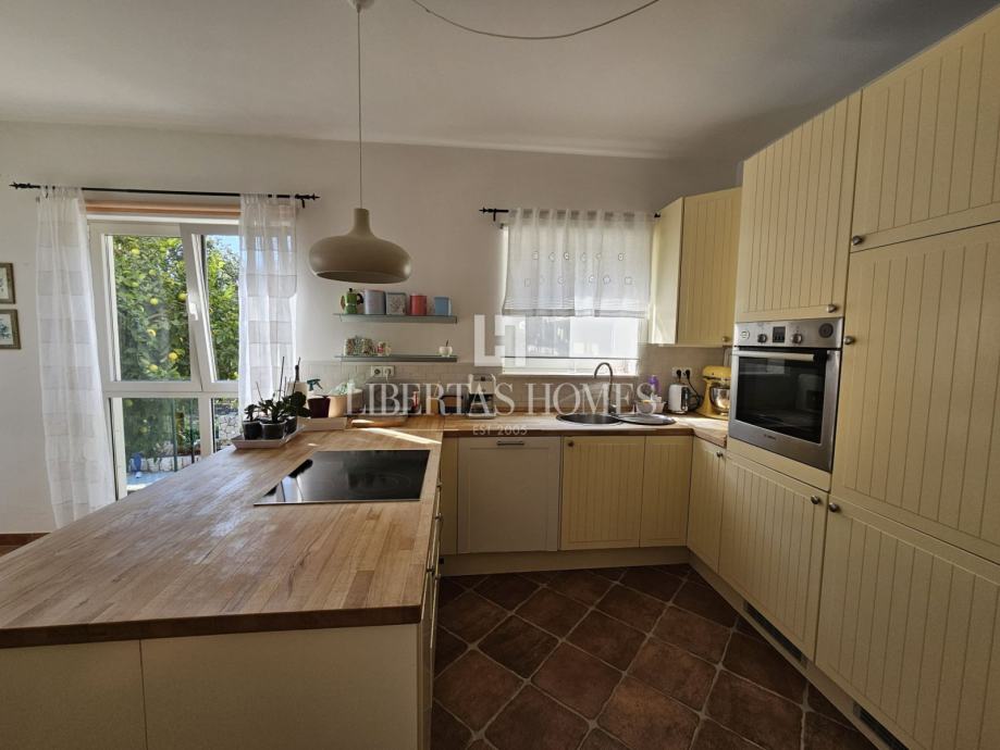 Prvi kat kuće nudi komforan stan koji se sastoji od prostranog dnevnog boravka s izlazom na terasu, moderne kuhinje, elegantne kupaonice te prostrane spavaće sobe, idealne za odmor i relaksaciju.