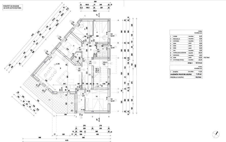 STAN U PRIZEMLJU – 127,10 m² + 23,35 m² natkrivene terase Prostran i funkcionalno osmišljen stan s vrtom i dva parkirna mjesta, sastoji se od: