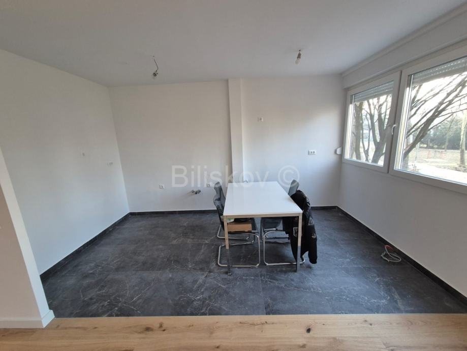 Sastoji se od ulaznog hodnika, velikog dnevnog boravka povezanog sa kuhinjom i blagovaonom (otvoreni koncept), dvije spavaće sobe, kupaonice.