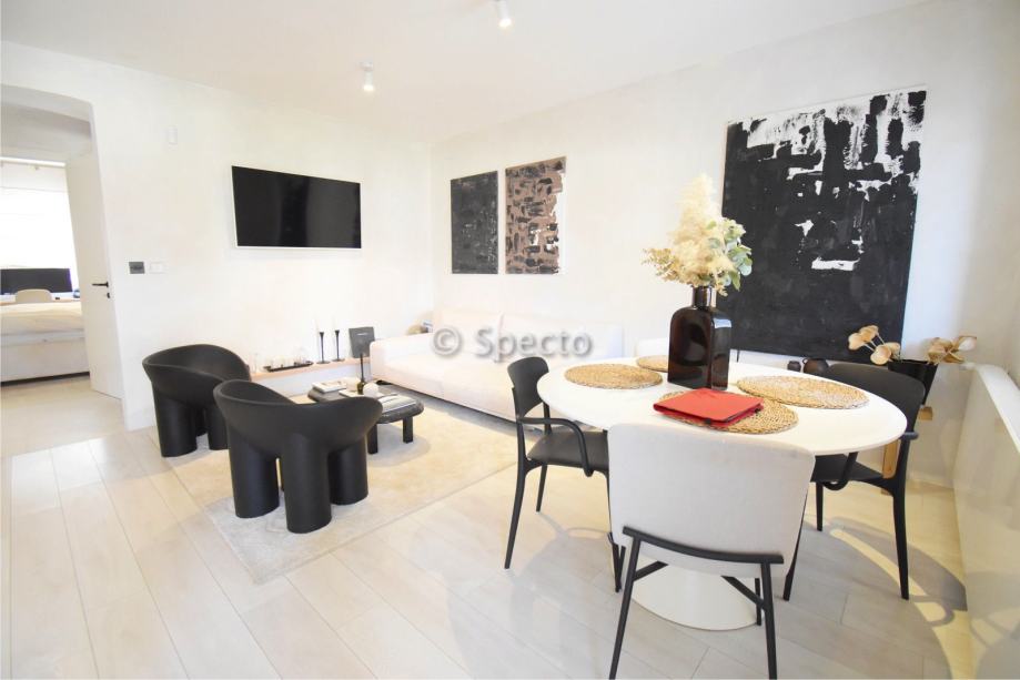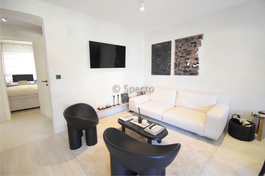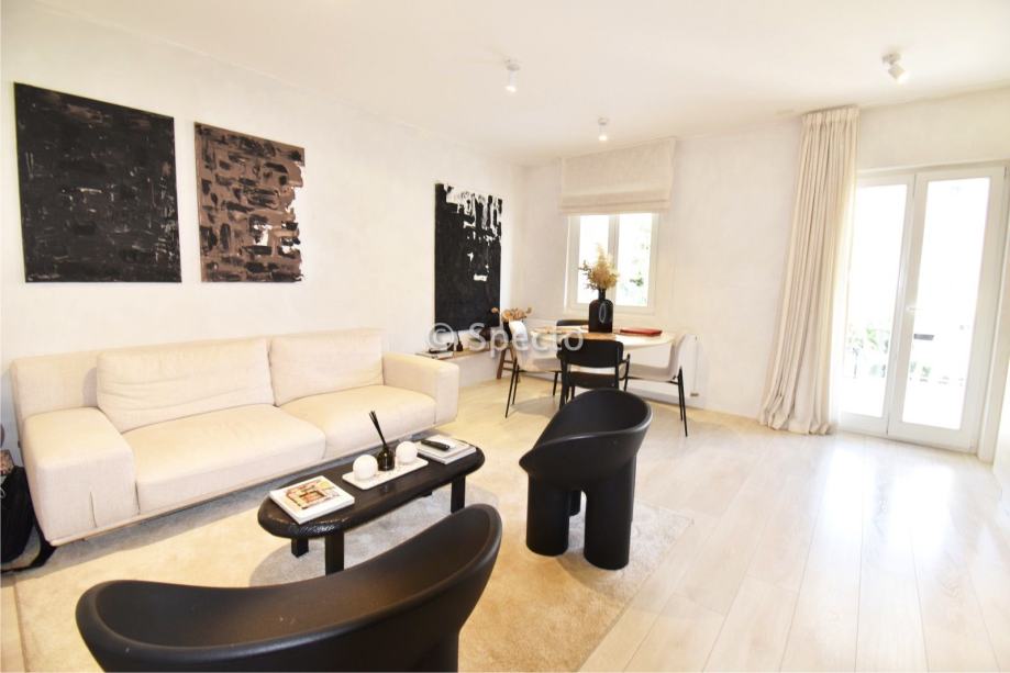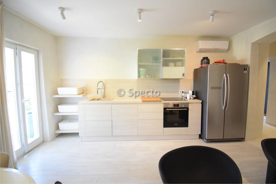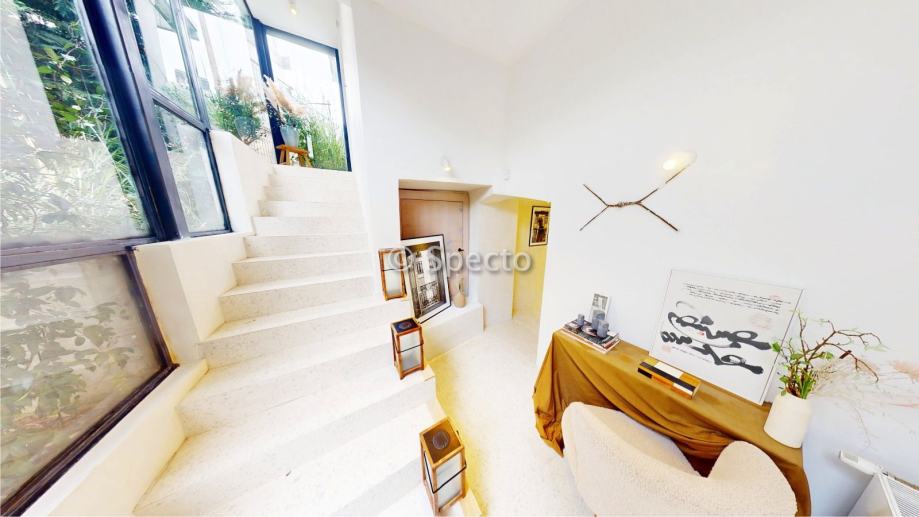 Prodajemo kompletno renovirani i dizajnerski namješten dvoetažni stan ukupne netto korisne površine 119m2(unutarnja površina stana 96,93m2, terasa površine 23,80m2, te dva vrta; ispred ulaza na kojem se nalazi parkirno mjesto površine 28m2 i dvorišta površine 68,60m2) u prizemlju kuće, izgrađene 1931. godine, na Vinogradskoj cesti.