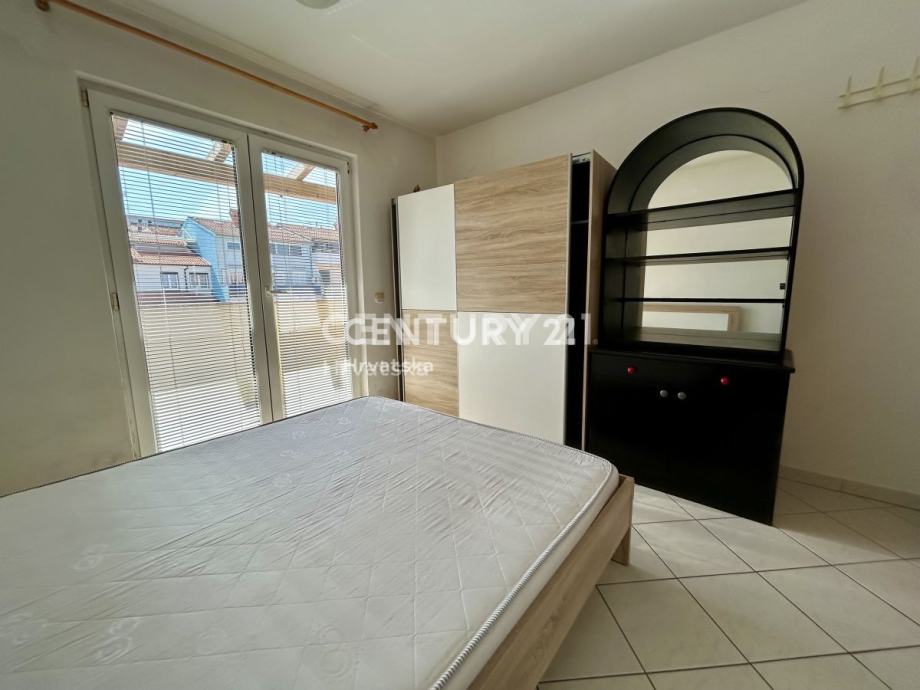 Stan se sastoji od ulaznog hodnika, kuhinje, blagavaone i dnevnog boravka sa izlaskom na terasu sa pogledom na more i stari grad Vrsar.