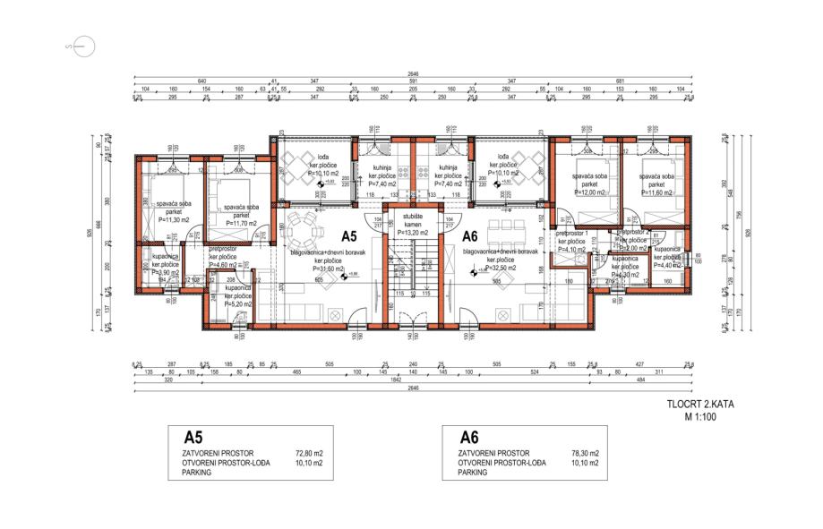 Stan A6 nalazi se na drugom katu i sastoji se od: