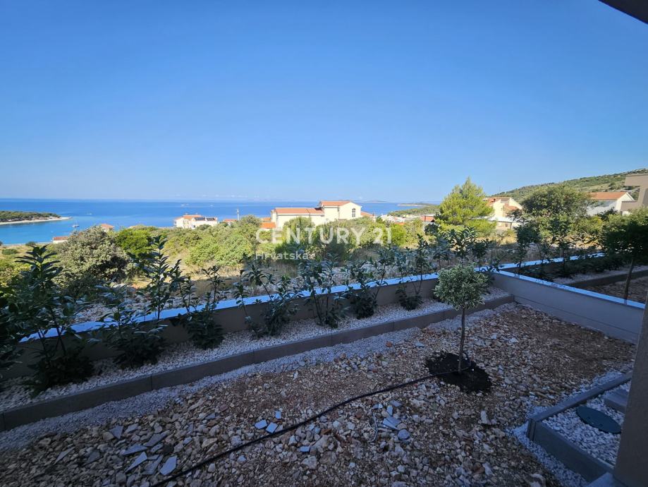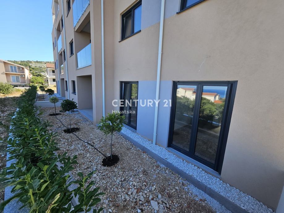 Apartman u prizemlju s pogledom na more i vrtom - Dolac, Primošten Prodaje se prekrasan apartman u prizemlju moderne stambene zgrade u mjestu Dolac, nedaleko od Primoštena. Zgrada se nalazi na uzvisini s fantastičnim pogledom na more, udaljena svega 500-ak metara od obale. Sastoji se od četiri etaže i ukupno osam luksuznih apartmana.