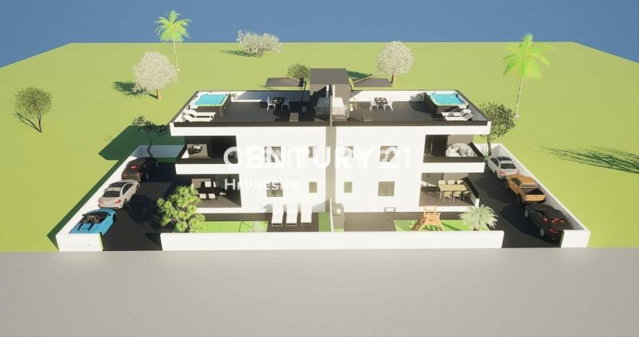 ZADAR - PRIVLAKA - BYT V 1. PATRO SE STŘEŠNÍ TERASOU - 150 m OD MOŘE Prodej dvoupokojového bytu se střešní terasou. Plocha bytu je 92 m2. K bytu náleží dvě parkovací stání.