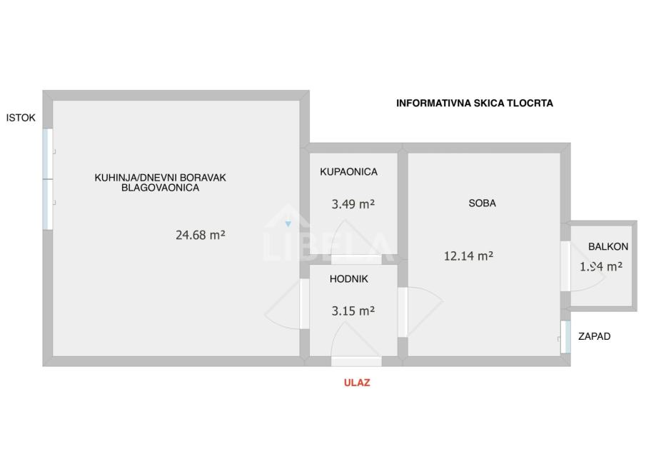 Uredno vlasništvo 1/1 bez tereta Orijentacija: istok-zapad Grijanje: centralno etažno Parking: javni, besplatni Visina stropa: 2,80 m