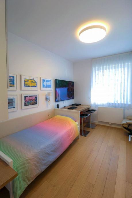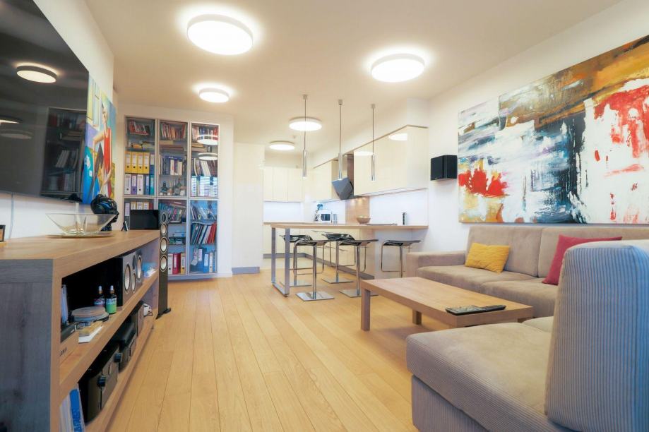 Prodaje se iznimno luxuzan stan, smješten u zgradi A+ energetske učinkovitosti i bez troškova grijanja, u blizini Heinzlove ulice (zona tramvaja). Stan se prodaje kompletno i pomno opremljen designerskim namještajem a sastoji se od: ulaznog prostora sa ugrađenim garderobnim ormarima, 2 Spavaće sobe, dnevnog boravka, kuhinje sa blagovaonskim prostorom, 2 kupaonice , loggia-e 8,43 m2, garaže 21,44 m2, garažnog park.mjesto 17,18 m2 (visina svih prostorija u stanu je 2,80m, NKP stana je 107,52 m2, grijana pov. stana je 76,53m2). Orijentacija stana je Jug, 7. kat od ukupno 8 katova (lift, prilagođena za osobe sa posebnim potrebama)