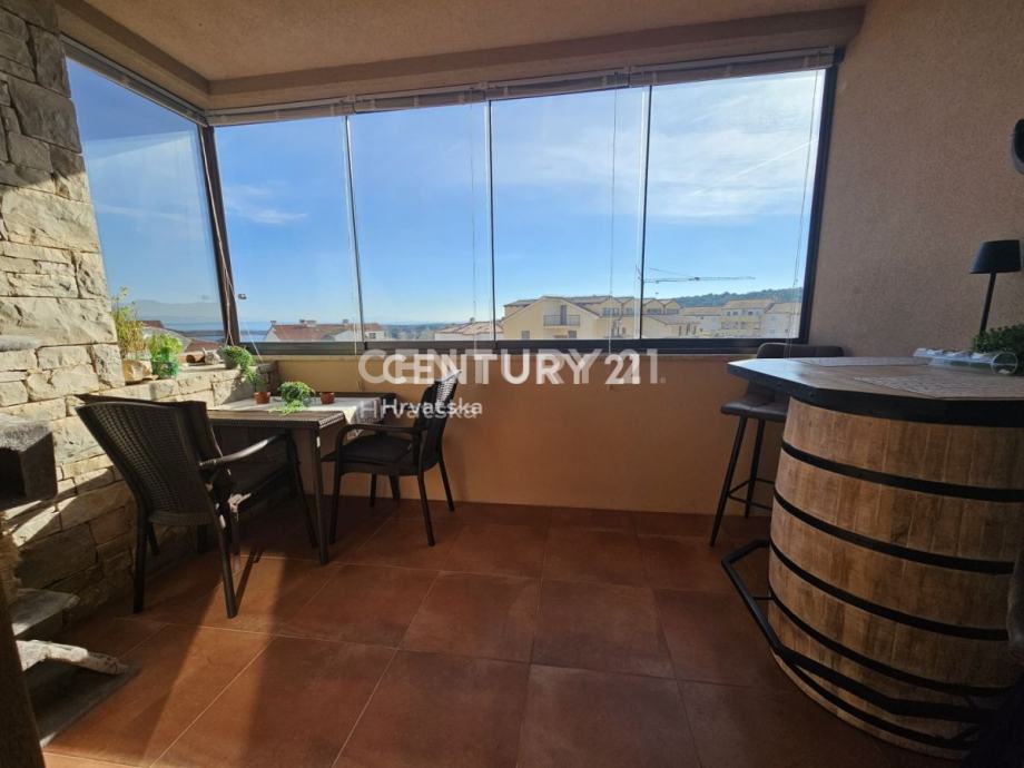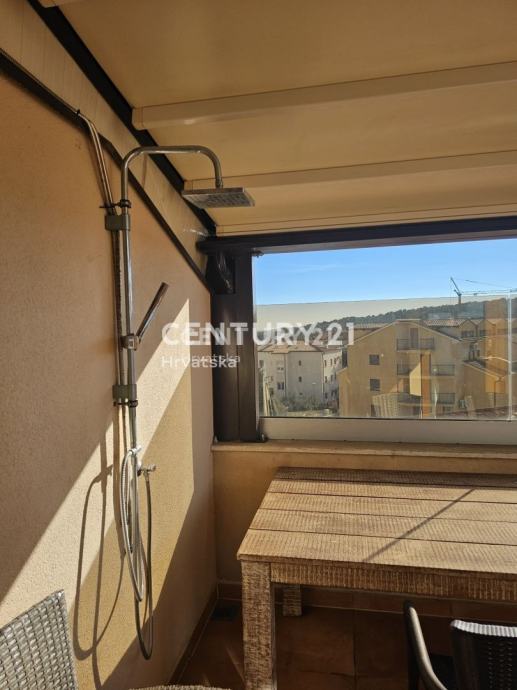 Balkon i lođa: Prostran balkon sa tušem i kaminom s pogledom na more pruža savršen prostor za uživanje na otvorenom, dok lođa dodatno obogaćuje privatni prostor stana, također i ona sa pogledom na more.