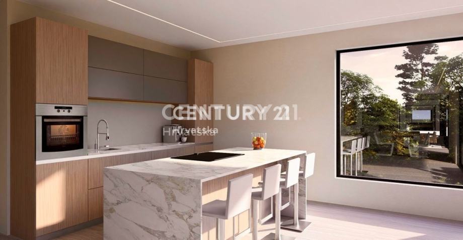 Ima dvije prostrane spavaće sobe za udobnost vas i vaše obitelji. Moderno uređena kupaonica opremljena je svim potrebnim sadržajima, uz dodatan komfor odvojenog WC-a. Tehnička soba pruža dodatni prostor za odlaganje ili tehničke potrebe, a dnevni boravak i kuhinja s blagovaonicom imaju pristup natkrivenoj terasi. Površina stana iznosi 91.74 m2, s orijentacijom prema zapadu. Podno grijanje na toplinsku pumpu osigurava ugodnu temperaturu i energetsku učinkovitost.