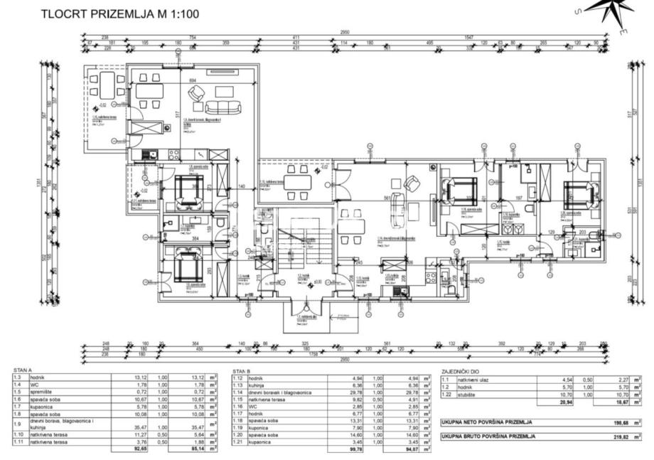 Ukupna neto korisna površina stana iznosi 92.65 m2.