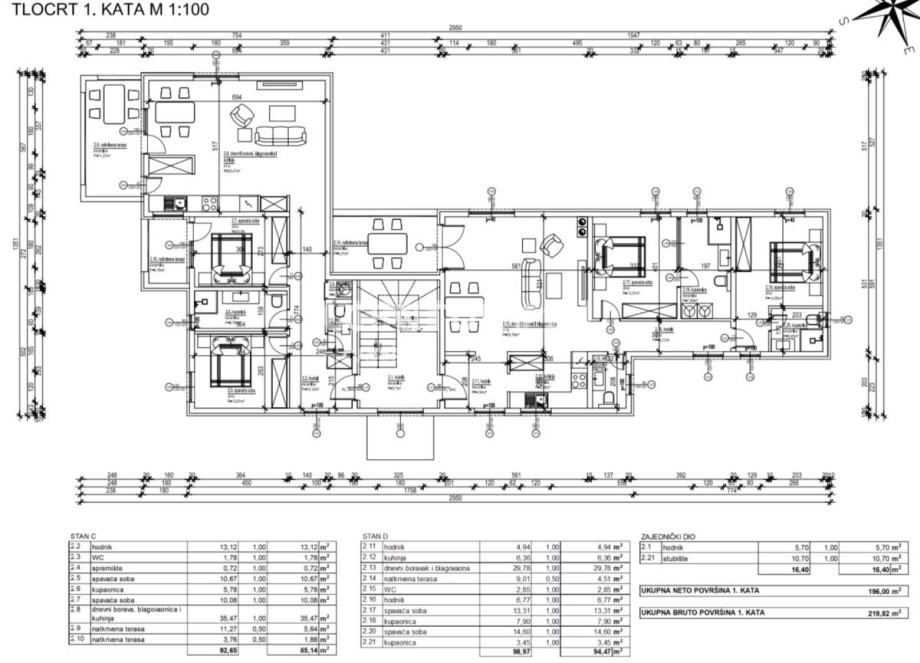Ukupna neto korisna površina stana iznosi 92.65 m2.