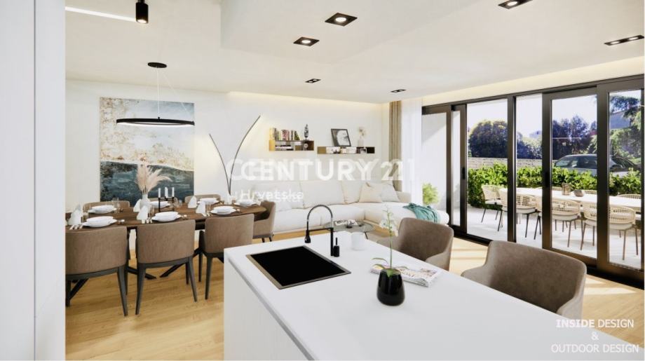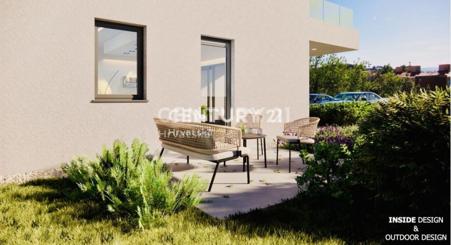 U samom centru grada Rovinja te samo 400 metara od mora i uređenih plaža, prodaje se ovaj moderan stan sa vrtom, u prizemlju jedinstvene manje zgrade atraktivne i moderne arhitekture sa ukupno 6 stanova.