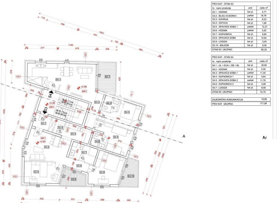 Ukupna netto korisna površina stana iznosi 80.24 m2.
