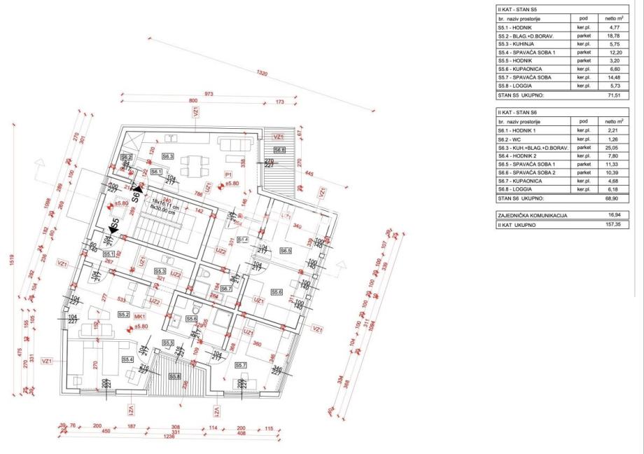 Ukupna netto korisna površina stana iznosi 71.51 m2.