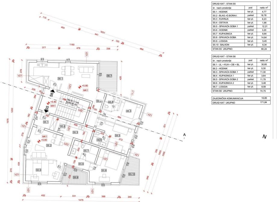 Ukupna netto korisna površina stana iznosi 74.75 m2.