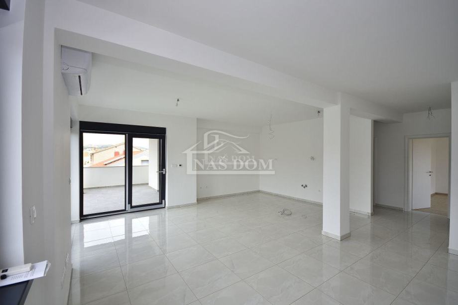 II KAT - trosoban stan površine 131,99 m2 koji se sastoji od: hodnik, soba sa kupaonicom, kuhinja s blagovaonom i dnevni boravak, terasa, spavaća soba, kupaonica, spavaća soba, stubište, krovna terasa površine 127 m2 na kojoj je instaliran jacuzzi, prostor za sunčanje, ljetna kuhinja, s terase se pruža prekrasan pogled na more i grad.