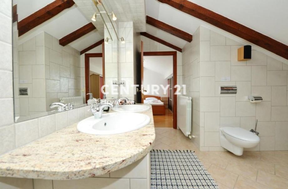 Hodnik, spavaća soba i kupaonica s WC-om i prozorom (koja uz tuš kabinu ima i kutnu jacuzzi kadu).