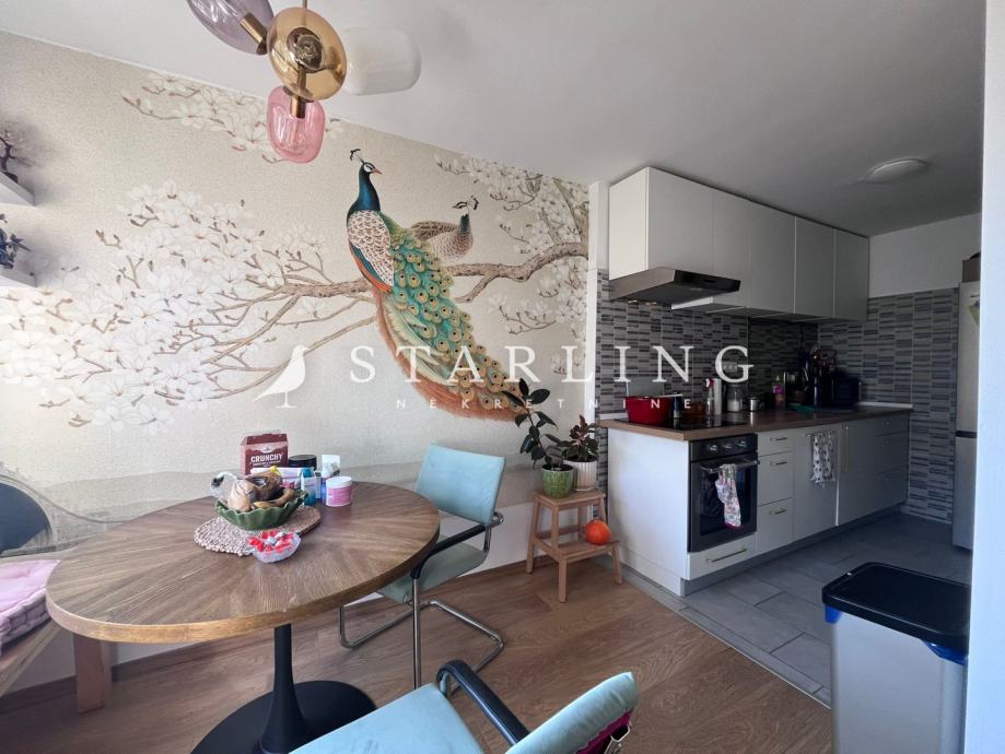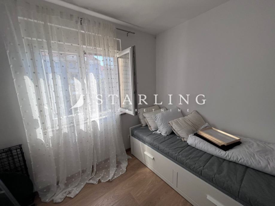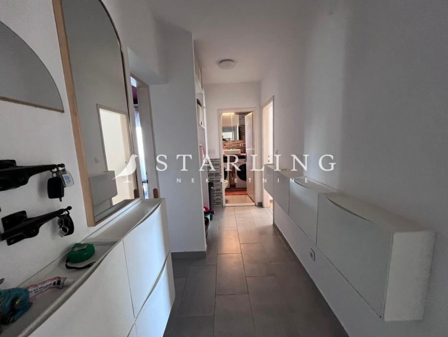 Stan ima vrlo dobar raspored te se sastoji od prostranog dnevnog boravka, kuhinje te hodnika koji vodi prema kupaonici i dvjema spavaćim sobama. Jedna od spavaćih soba ima izlaz na terasu, koja pruža dodatni prostor za opuštanje i boravak na svježem zraku.