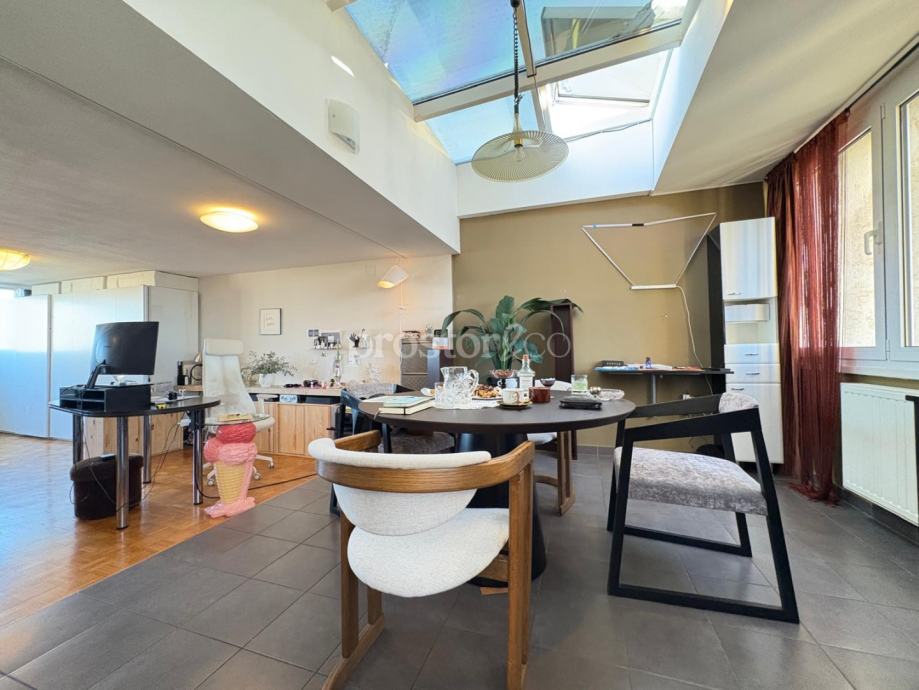 Prodaje se šarmantan, svijetao i iznimno prozračan stan ukupne površine 70,72 m², smješten na šestom katu zgrade s liftom, što osigurava mir, privatnost i otvorene poglede. Zgrada ima ukupno šest katova i samo dva stana po etaži, čime se dodatno naglašava kvaliteta i mirnoća stanovanja. Stan se sastoji od spavaće sobe površine 8,2 m², prostrane kuhinje i blagovaonice površine 34,9 m² organizirane u otvorenom konceptu, dnevnog boravka površine 23,3 m² s impresivnom ostakljenom površinom cijelom dužinom prostora te ostakljenim stropom koji prostoru daje obilje prirodnog svjetla i izražen osjećaj prostranosti, kupaonice površine 3,5 m² te ulaznog hodnika površine 3,6 m² koji vodi u otvoreni dnevni prostor.