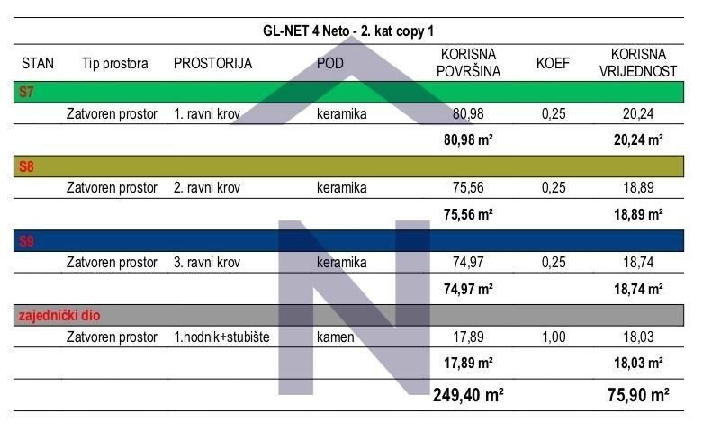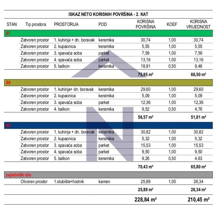 Ukupna neto površina stana sa pripadcima iznosi 73,64m2.