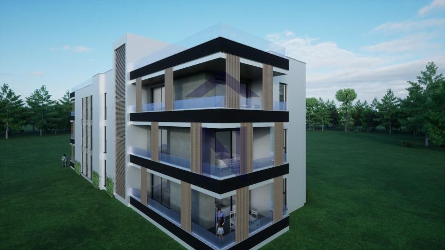 We are selling a luxury newly built property in Zadar, located in Diklo. The building consists of a basement with storage units, a ground floor, first floor, and second floor, with a total of 9 residential units. The building has an elevator.