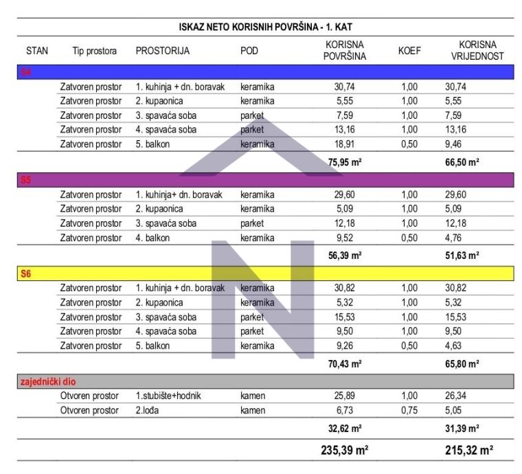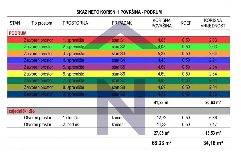 Ukupna neto površina stana sa pripadcima iznosi 74,21m2.