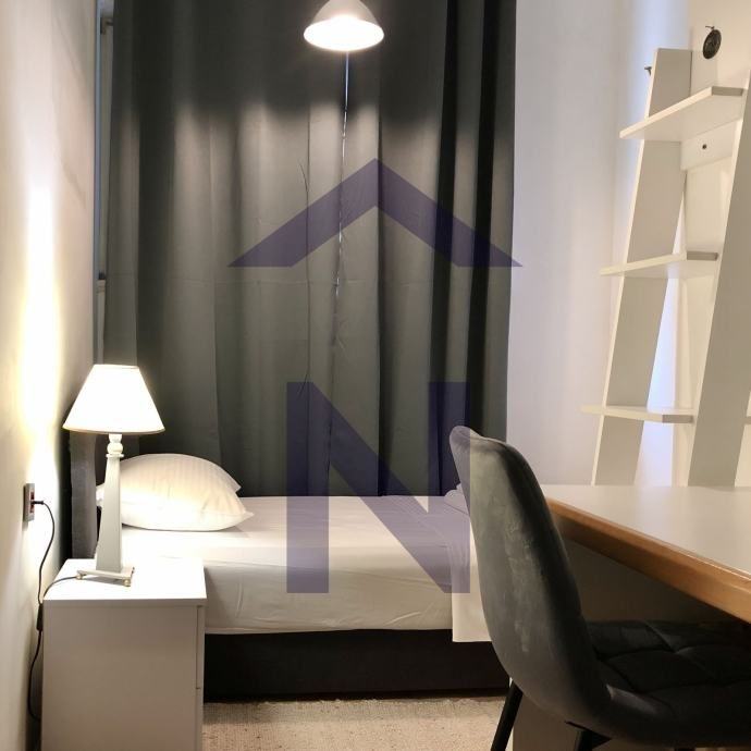 Stan je kompletno namješten. Grijanje i hlađenje je putem klima uređaja a ima i kaljevu peć.