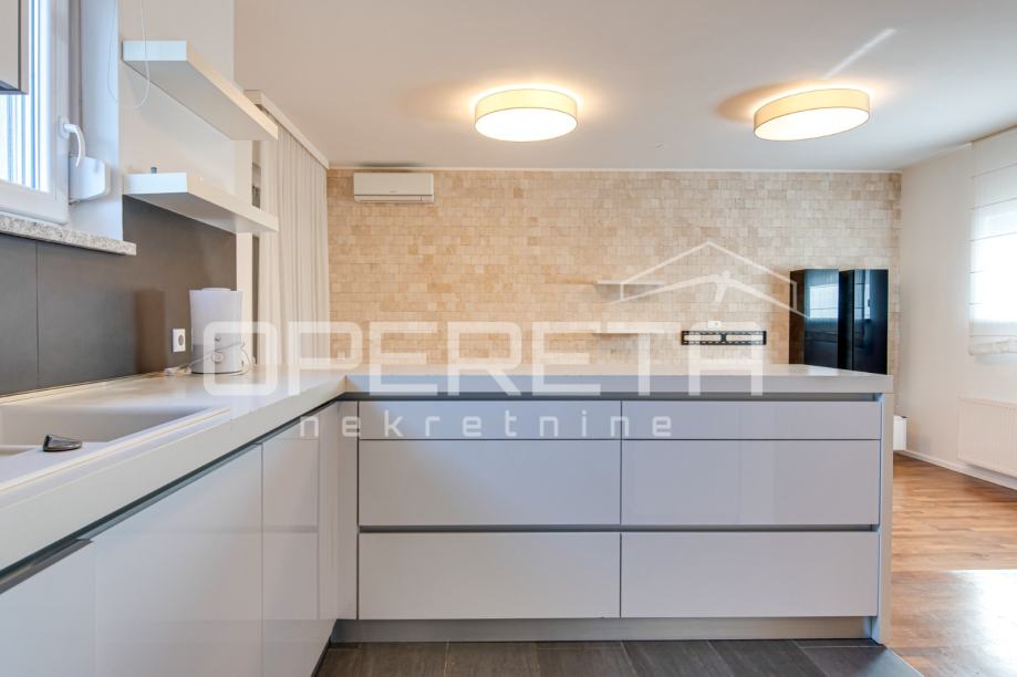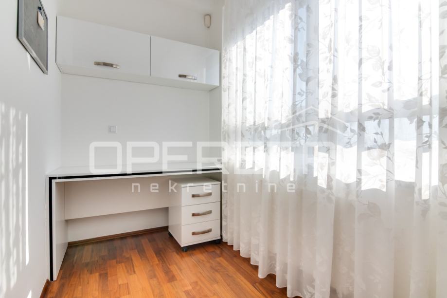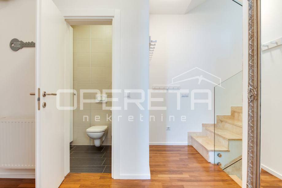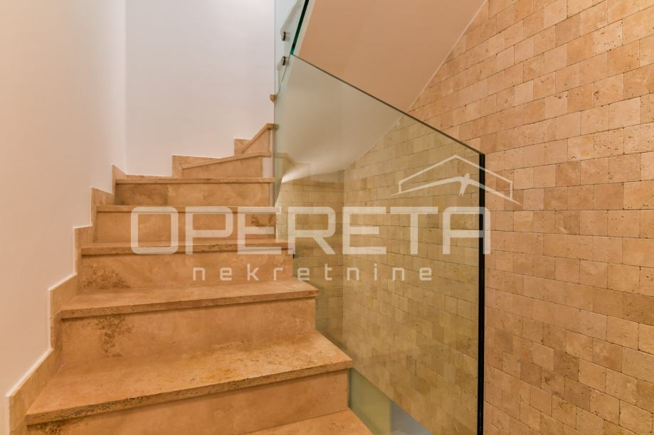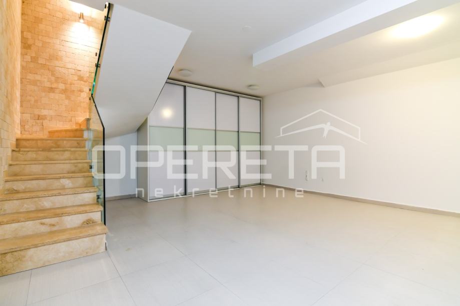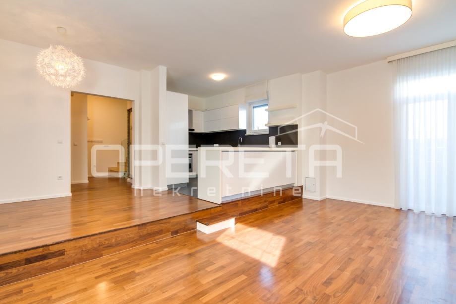 Stan se sastoji od 4 etaže, 4 spavaće sobe, 2 kupaonice, smješten na parceli od 1548m2. Urbana Vila od samo 3 stanbene jedinice, veliki zajednički vrt sa dječjim igralištem, prostorom za druženje, roštiljem, vrtnom kućicom.